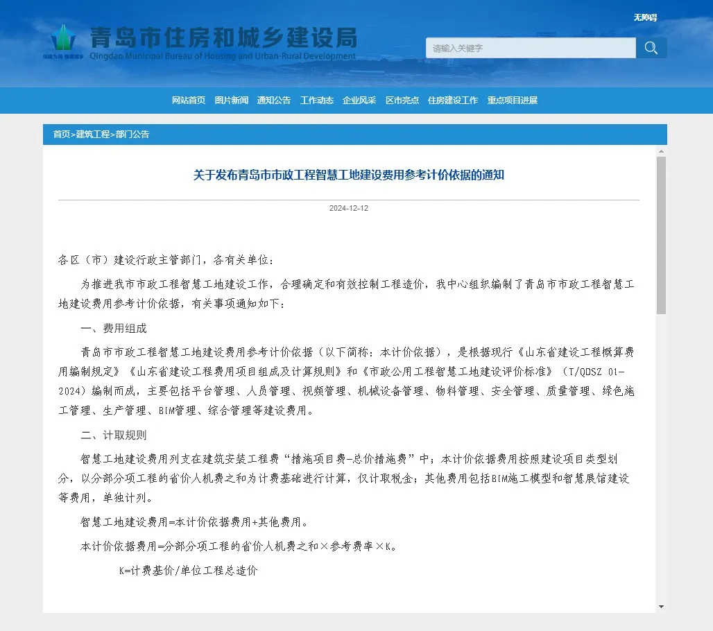 集團(tuán)牽頭參編的《青島市市政工程智慧工地建設(shè)費(fèi)用參考計價依據(jù)》正式發(fā)布