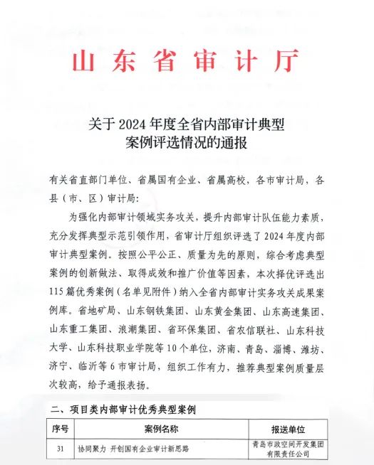 集團(tuán)研究型審計初獲成果——獲評2024年度全省內(nèi)部審計優(yōu)秀典型案例