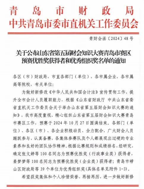 集團(tuán)在山東省第五屆財會知識大賽青島市賽區(qū)獲得佳績