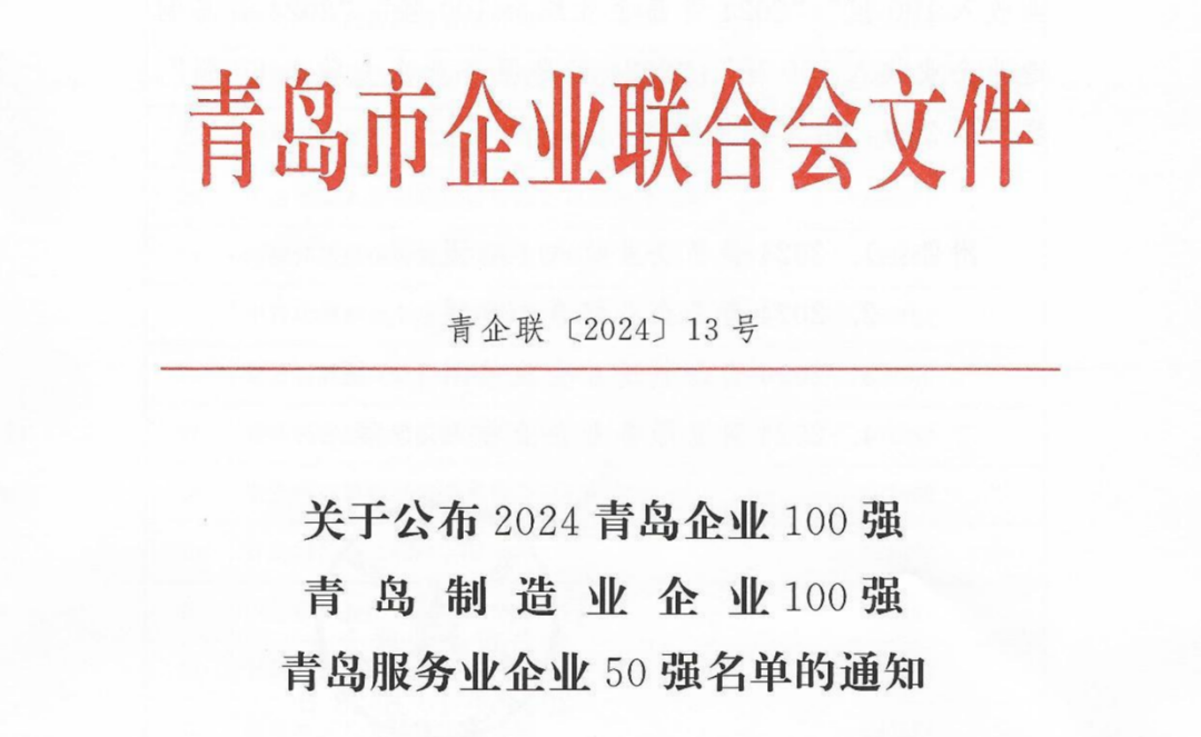 集團(tuán)入選“2024青島企業(yè)收入100強(qiáng)”及“2024青島企業(yè)綜合100強(qiáng)”