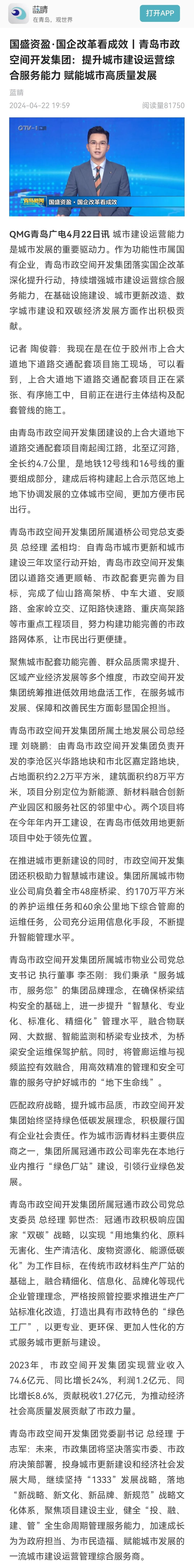 【青島新聞】國盛資盈·國企改革看成效丨青島市政空間開發(fā)集團:提升城市建設(shè)運營綜合服務(wù)能力 賦能城市高質(zhì)量發(fā)展