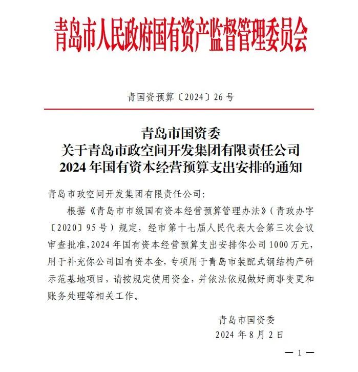 近日,集團申報的青島市裝配式鋼結(jié)構(gòu)產(chǎn)研示范基地項目,經(jīng)市第十七屆人民代表大會第三次會議審查批準,獲得國有資本經(jīng)營預算支出專項資金獎補 1000 萬元。這是集團第三次通過該項審批,累計獲得獎補資金 4500 萬元,為主業(yè)發(fā)展提供了有力的資金支持與政府背書。