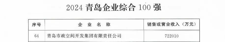 為深入貫徹落實習近平新時代中國特色社會主義思想和黨的二十大精神,記錄、分析青島市排頭兵企業(yè)的發(fā)展情況,促進青島市大企業(yè)持續(xù)健康發(fā)展,同時給市委、市政府及相關(guān)部門提供大企業(yè)發(fā)展相關(guān)數(shù)據(jù)和研究信息,青島市企業(yè)聯(lián)合會參照國際國內(nèi)通行方法,組織專家審查委員會審核確定了“2024青島企業(yè)收入100強”“2024青島企業(yè)綜合100強”。集團本年度再次入選該榜單并取得名次提升,充分表明集團四新戰(zhàn)略與青島城市發(fā)展戰(zhàn)略高度匹配,集團主業(yè)板塊發(fā)力成效顯著,大幅提升了綜合實力與社會影響力。