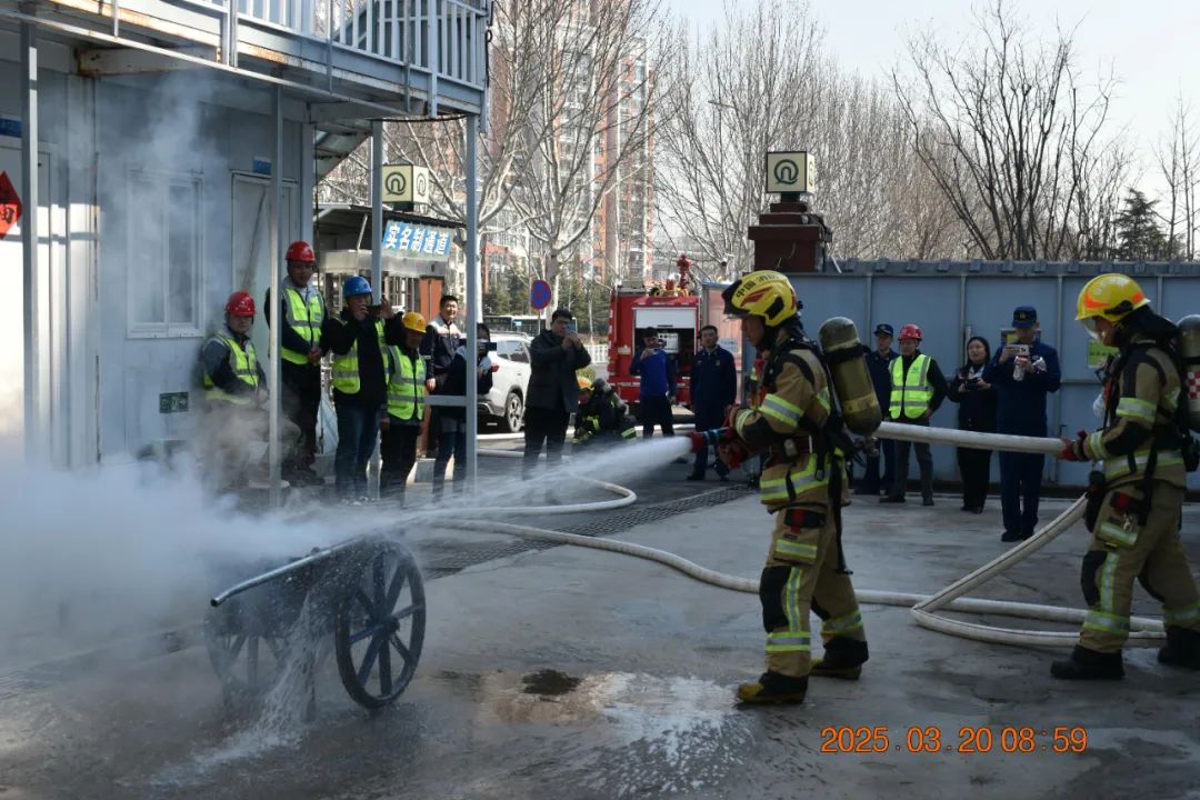 隨后,消防員們現(xiàn)場進行了火災撲救實戰(zhàn)演示。通過模擬火災場景,講解高壓水槍、正壓式空氣呼吸器等專業(yè)化消防裝備的使用方法;帶大家體驗高負荷救援裝備,深入理解消防作業(yè)強度及技術標準,進一步增強了全體人員的消防安全意識。培訓座談環(huán)節(jié),消防員系統(tǒng)講解了滅火器分類標準及操作規(guī)范,幫助參訓人員掌握“見火不慌、抬手即滅”的救火技能,有效提升火災初期響應效率。