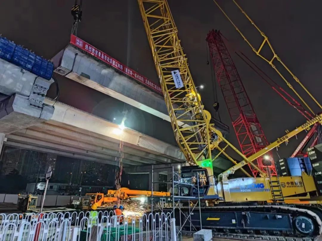 7月8日-7月11日,遼陽路(南京路—福州路段)交通結(jié)建工程接連完成1#大箱梁澆筑以及預(yù)制小箱梁吊裝,實現(xiàn)了項目主橋全線合攏。